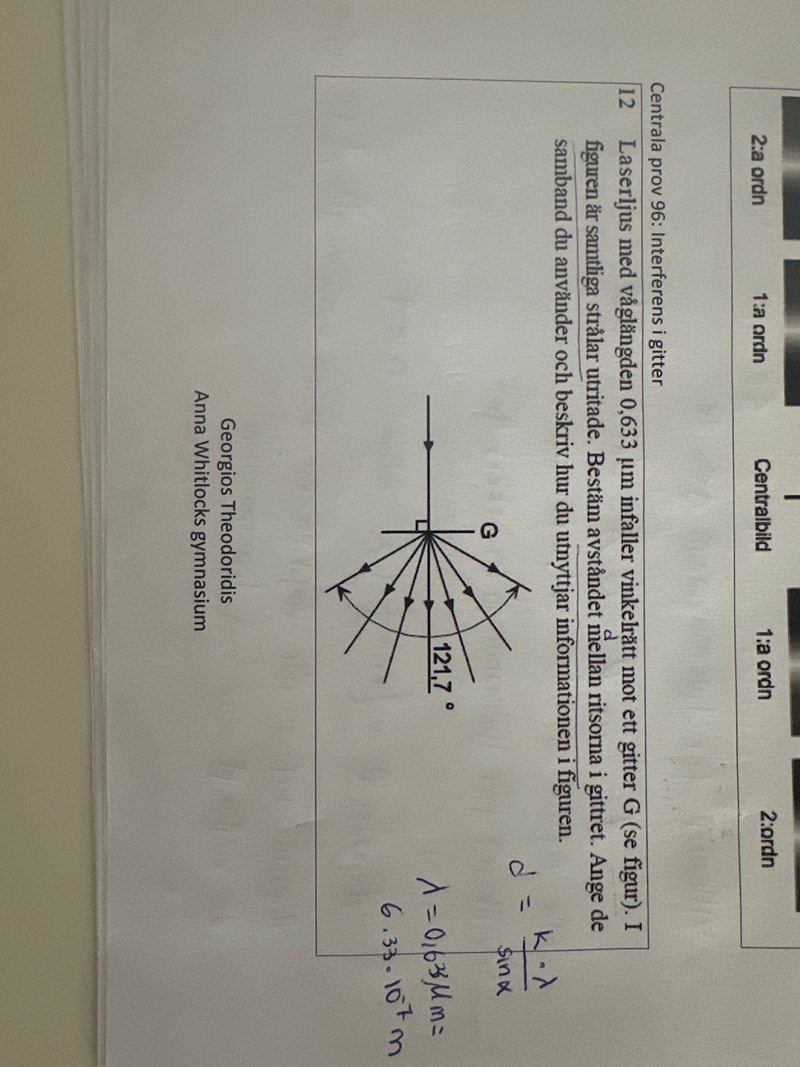 Du får vinkeln alpha med 121,7/2 och det är det tredje maximat så k=3.
