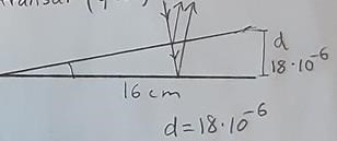 Svaret är fel (finns inget svarsalternativ som är 180) och jag använder inte alla givna värden, som bland annat glasets brytningsindex och längd.