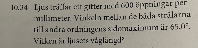 (Uppgiften borde kanske ha sagt att det var vinkelrätt infall på gittret.)