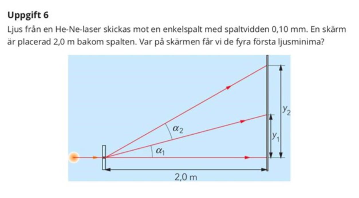 våglängd på HeNe laser får du nog slå upp i tabell.