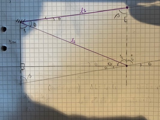 Men då kommer jag till slutsatsen att för små vinklar så blir , och små vinklar som är ungefär mindre än 20 grader så blir det destruktiv interferens.. men det känns som att jag är fel ute... l1 kan väll inte vara lika lång som l2?