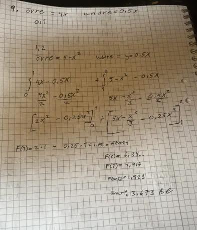 Jag är nästan 100% säker på att jag gjort fel här. Jag förstå mig inte på helheten i att ställa upp funktionen. I boken säger de att man ska ta f(x) - g(x) , då den visar att f(x) är högst upp, nej jag fattar inte, det känns lite ludigt.