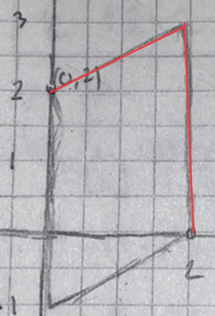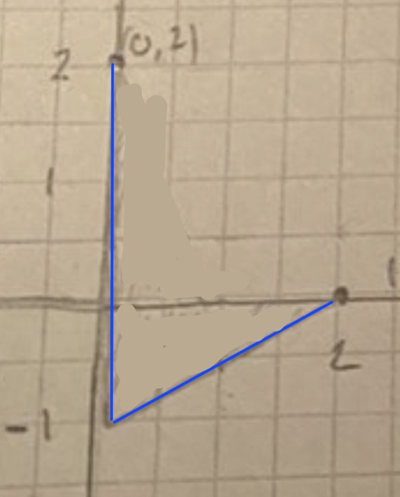 Jag vet att jag har koordinaterna (2, 0) och (0, 2), men efter det sitter jag fast. Vad är nästa steg? Kan vi ta detta steg för steg tills jag löser det?
