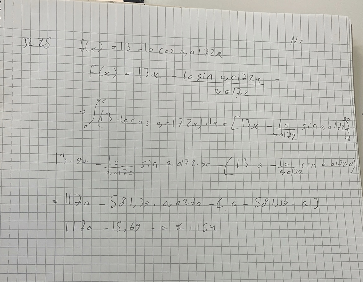 Laguna skrev:Jag tror också att gränserna ska vara andra. Vi vill approximera en summa av 90 värden med en integral. Värdet för varje x kan få approximeras av arean under funktionen för intervallet [x, x+1]. Då ska vi integrera från 0 till 89.