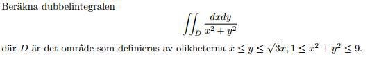 Hej, jag försöker lösa en dubbelintegral genom att använda polära koordinater (första gången).