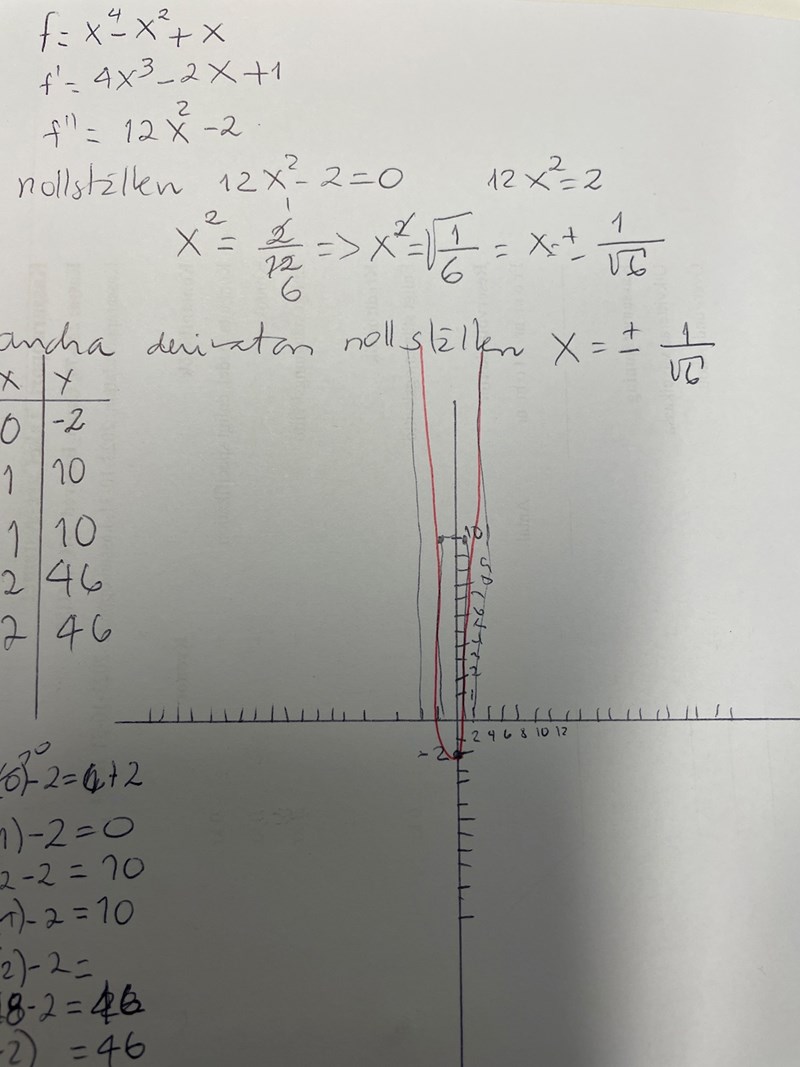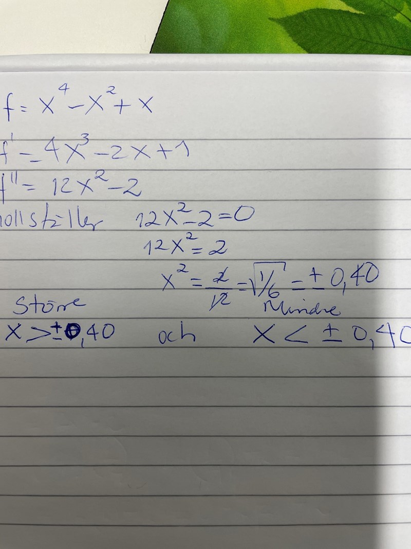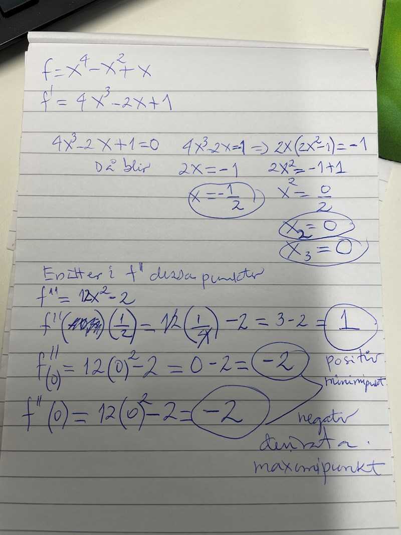 Om man ser andra har man använt sig att första derivatan och sen ersätta i andra derivatan