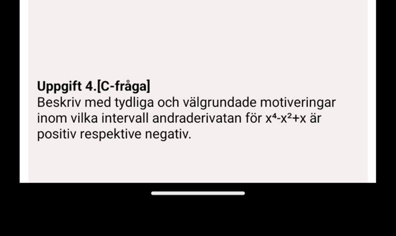 Nej, det hela är att du ska besvara frågan om när andraderivatan är positiv respektive negativ.