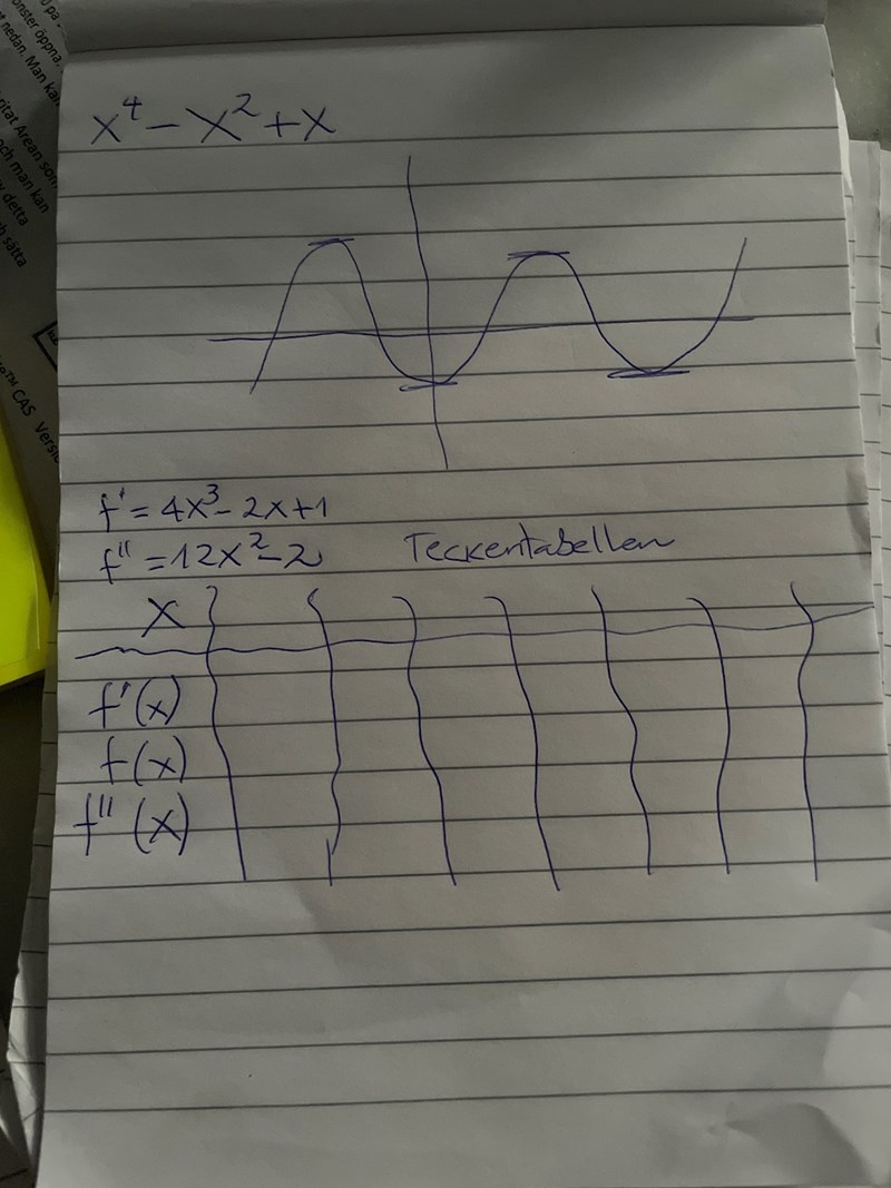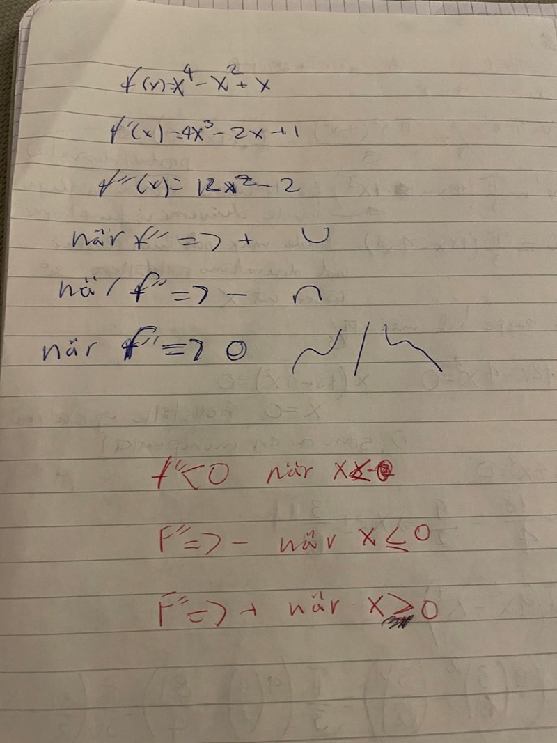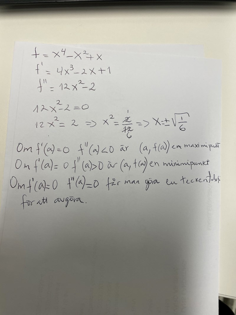 - Om f''(x1) = 0 så vet vi inte vilken typ av punkt det är utan vi måste gå vidare för att undersöka det