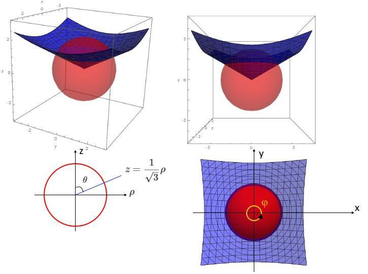 och jag undrar på när jag ska rita området, kan jag rita paraboloiden z=1/sqrt(3)*sqrt(x^2+y^2), men i de flesta uppgifter ser jag inte att de ritar x^2+y^2+z^2=4. så hur ritar vi denna ytan också, eller behöver vi inte rita den får att få intervallet.