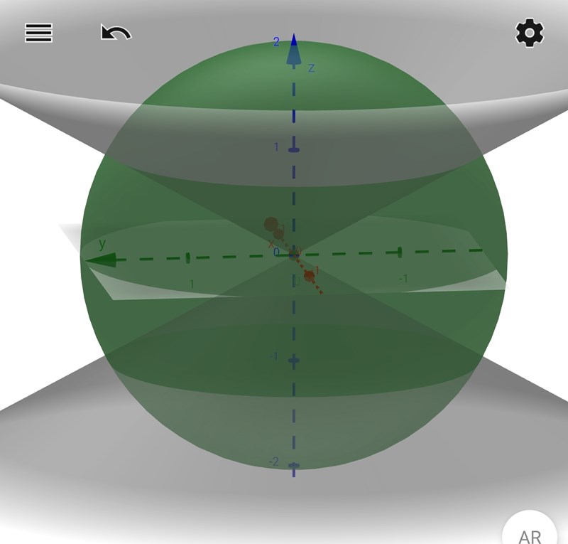 Området begränsas av en sfär (den röda bollen) och en upp och nedvänd kon (den blå ytan).