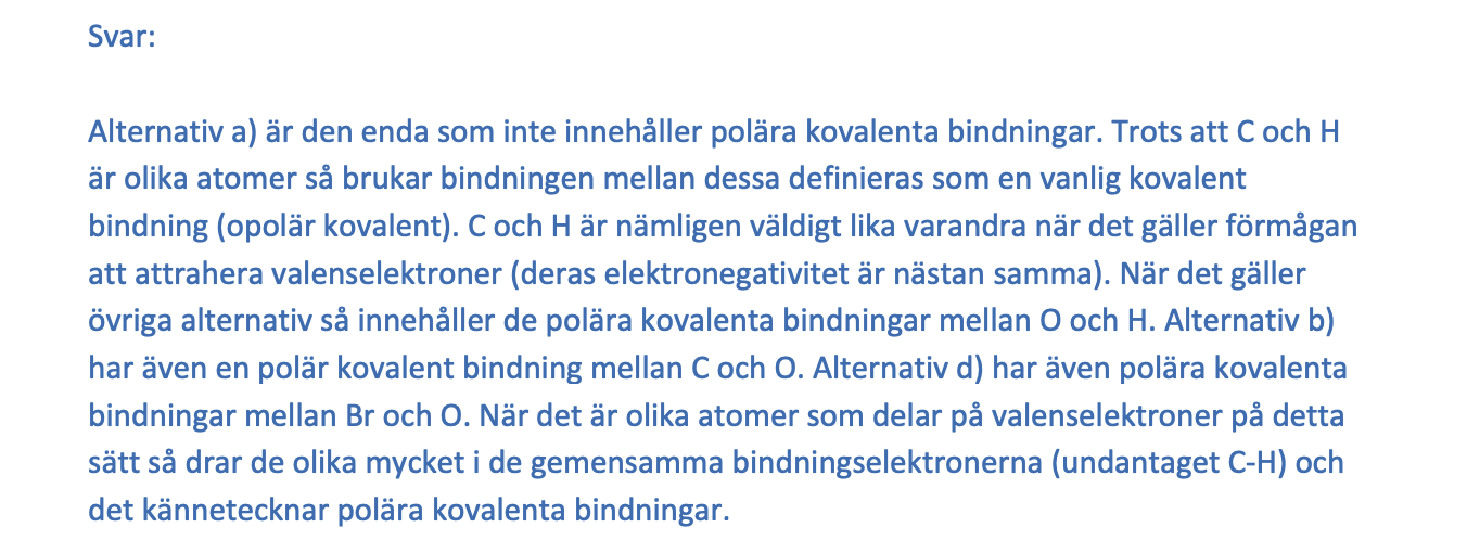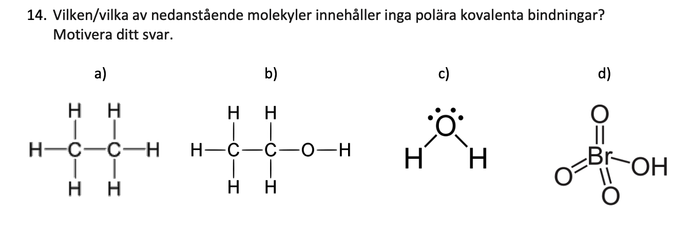 Jag förstår alla motiverngar men fattar inte varför det uppstår polära kovalenta bindingar mellan Br och O när deras elektronegativiteten är nästan samma, mer nära än vad C och H är nära varandra och i en metan molekyl säger man att det är opolär kovalenta bindningar mellan atomerna.