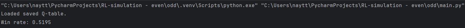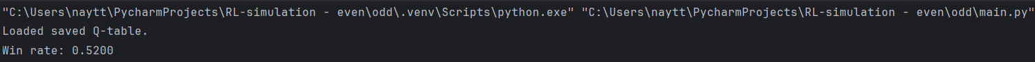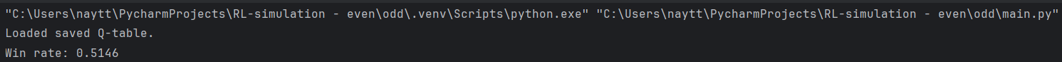 Det stämmer också med min simulering. Så det bästa beslutet är med andra ord alltid att gissa på udda summa, då vinner man alltid i längden.