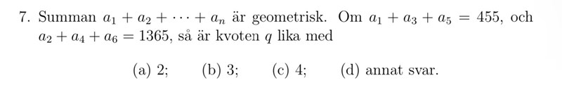 Inttenta 2012 Uppgift 7, Geometrisk summa.
