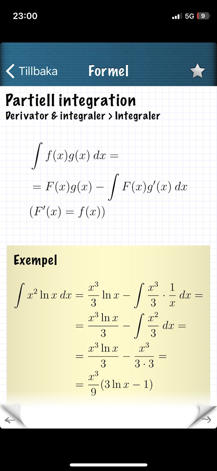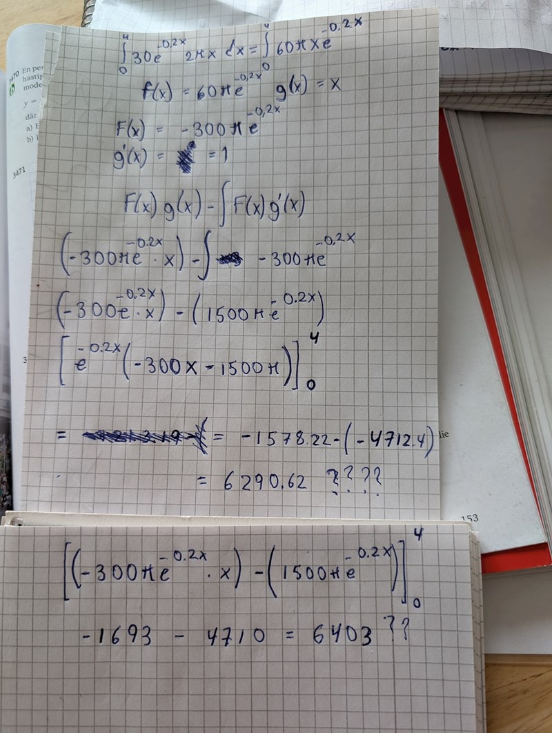 Har gjort det exakt enligt formeln för partiell integration flertalet gånger men det stämmer inte. Klarar inte av det. Skitsamma.