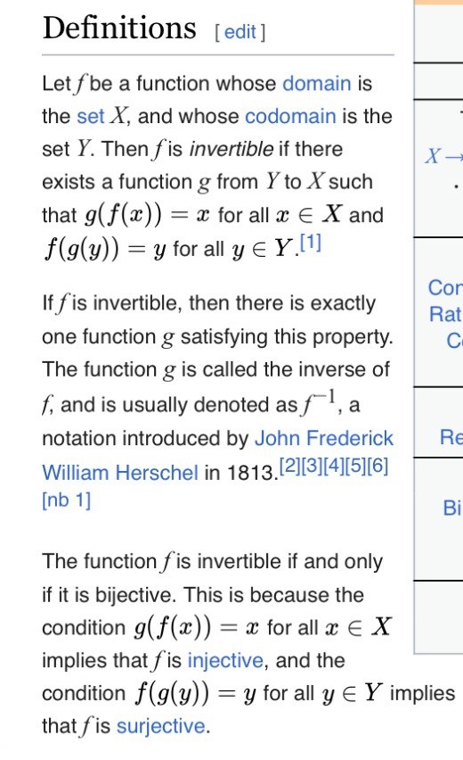 Det betyder att f(x) = 1/g(x) är positiv och strikt avtagande då x 0. Och således är f injektiv.