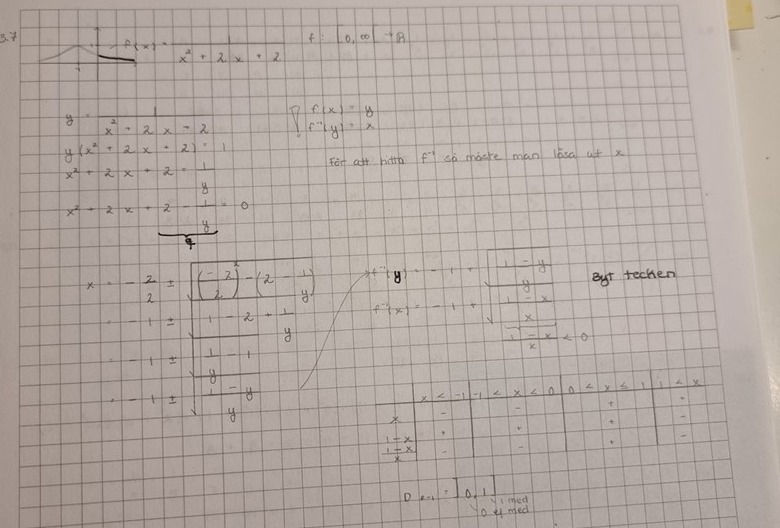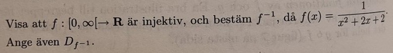Sedan så måste f-1(x) alltid ligga i Df, vilket ger villkor på x. Speciellt så måste f-1(x) vara större än eller lika med 0.