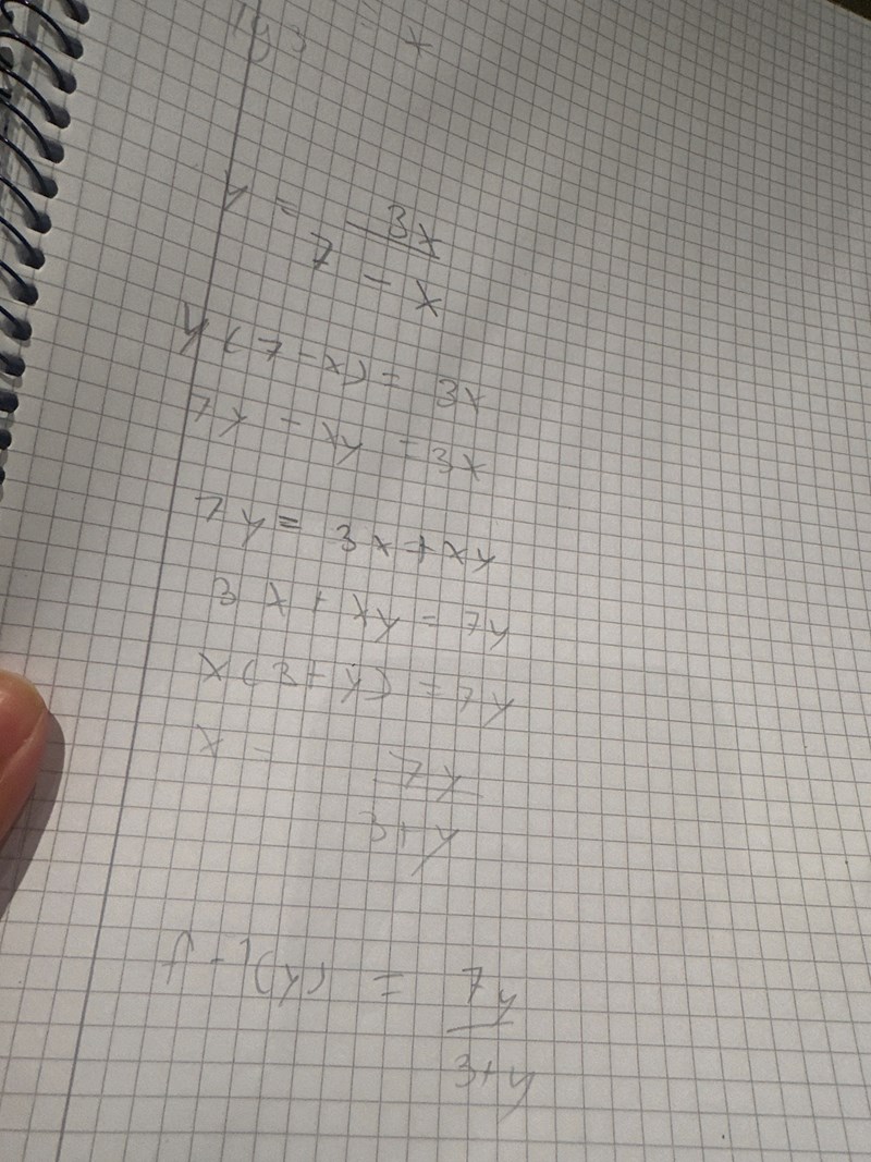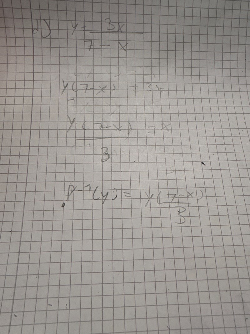 Du måste lösa ut x helt på en sida, dvs du skall ha x själv på en sida om likhetstecknet och på andra sidan skall endast y vara variabel.