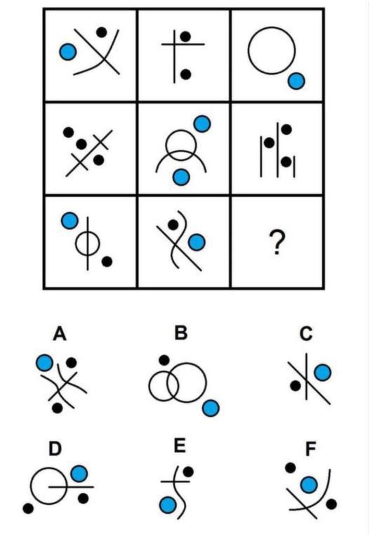 I varje bild är antalet raka streck lika med antalet svarta prickar. Det utesluter alla svarsalternativ utom E.