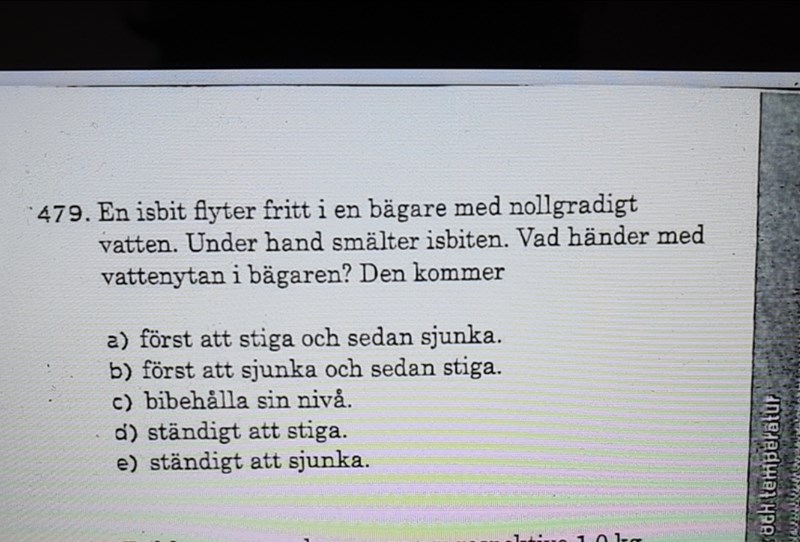 Eftersom is inte skjunker har den ju en lägre densitet. När isen smälter kommer ju densiteten öka, och massan från isen tar upp mindre plats, så att hela vattennivån skjunker. Eller?