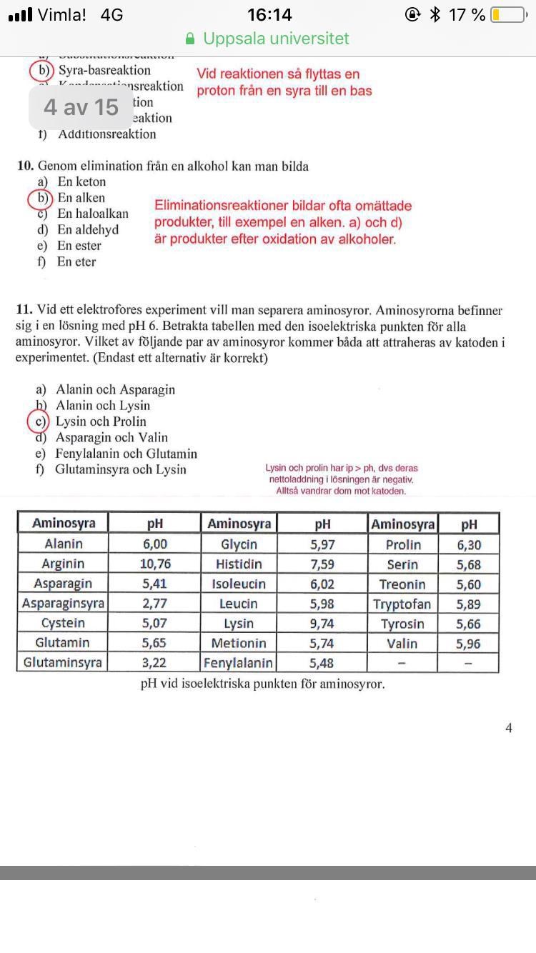 Svaret är rätt men förklaringen är felaktig. Eftersom pH är lägre än ip kommer aminosyrorna att ta upp protoner ur lösningen och bli positivt laddade, dvs katjoner. Det är alltid så att katjoner vandrar mot katoden oavsett ifall det handlar om elektrolys, en galvanisk cell eller elektrofores.