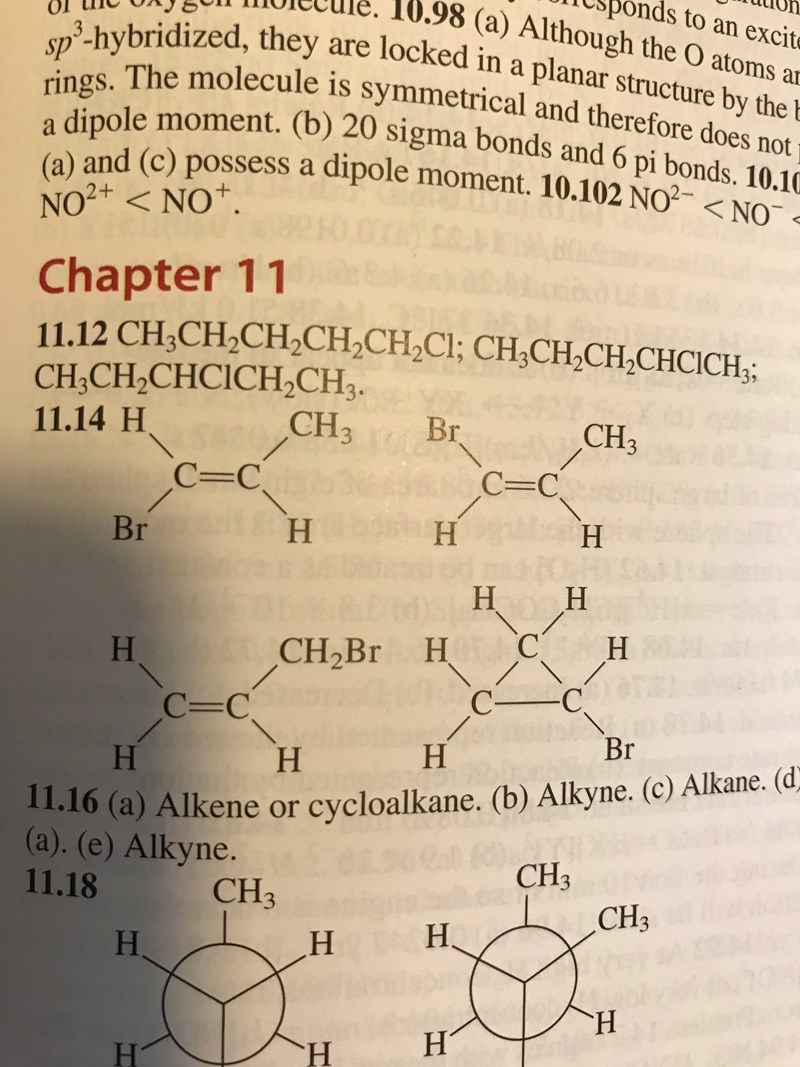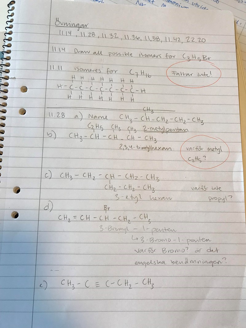 Här under 11.14 så ska jag rita upp isomererna för C3H5Br och ni kan se i facit hur de ska ritas upp. Hur ska jag kunna veta att det ska vara en dubbelbindning med här tex?