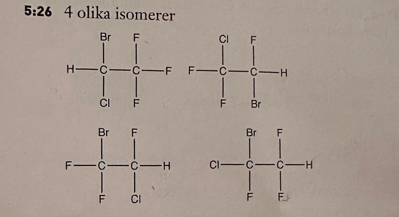 Hur namnger man de här isomererna , den första hade jag nämnt 2 brom 1,1,1 trifluor 2 kloretan, men det är fel ???