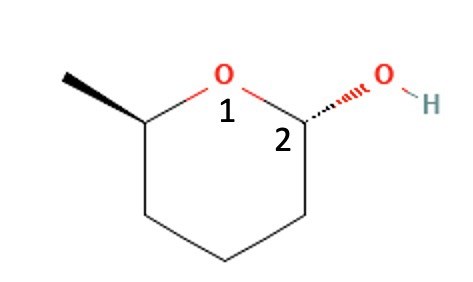 Det känns som vi pratar förbi varandra. pg.a. numreringen i den bildade tetrahetrahydropyranringen. Den borde vara som i bilden nedan, för 5-metyloxan-2-ol.
