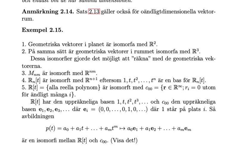Yes, det står som ett av flera exempel på isomorfa vektorrum. Bilden är från kompendiet på den här länken (bilden är från sida 18):