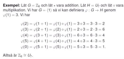 Din definitionsmängd är och därför blir 6=0. De tagit alla tal i definitionsmängden och applicerat på dem. Vad krävs för att isomorfismen ska gälla?