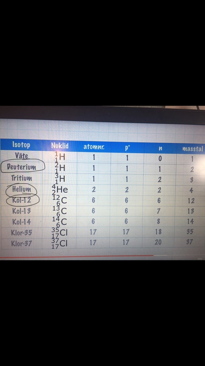 Jag förstår inte riktigt vad en isotop är. För jag har läst att en isotop är när det har mer eller mindre neutroner än protoner. Att antalet neutroner och protoner inte är lika. Men i bilden ser jag några som ja har markerat, där deras neutroner och protoner är lika mycket. Vad är det jag har misstolkat?