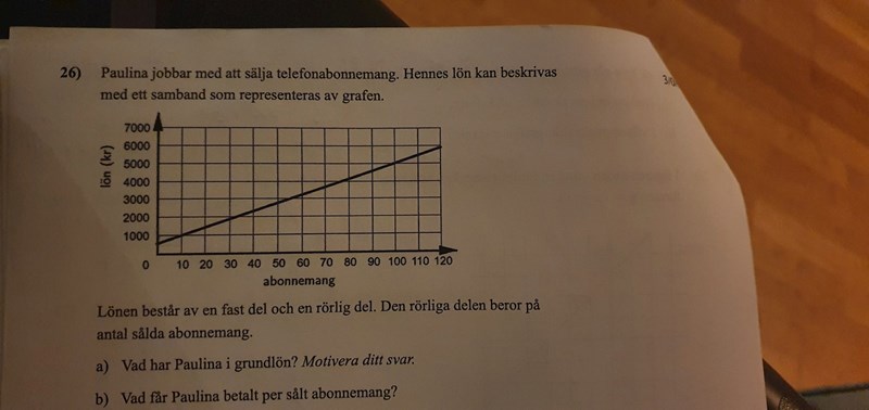 Tips på a-uppgiften: Grundlönen är hur mycket Paulina får vid 0 sålda abonnemang.