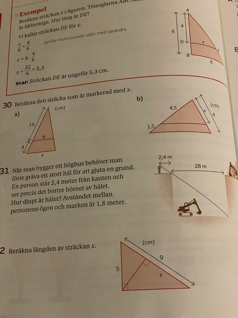 Förhållandet mellan dem är detsamma, dvs x/8=4/6. Ekvationen löses och x=5,3 ungefär.
