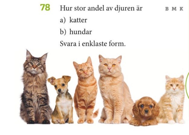 Om vi ska skriva upp katter i bråkform så är de 4/6