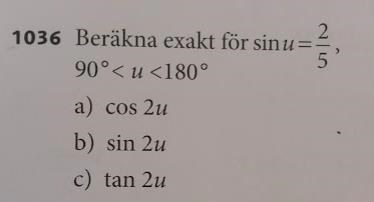 Dracaena skrev:tan(2u)=sin(2u)/cos(2u), kommer du vidare då?