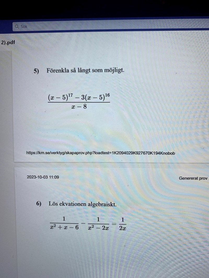 Jag antar att man ska börja med att förenkla det med den omvända kvadrerkngs/konjugation regeln men vet ej hur jag tar mig vidare…. Jag behöver hjälp med båda frågorna