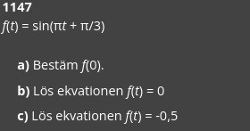 Hej, jag får inte fram rätt svar när jag räknar så här. (uppgift b) Sinx =0 när x=0 eller x=pi