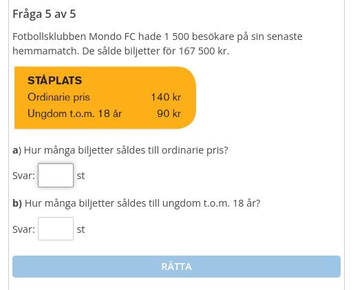 Kan du då sätt upp ett uttryck för att de sålde biljetter för 167 500 och ett uttryck för att antalet besökare var 1500?