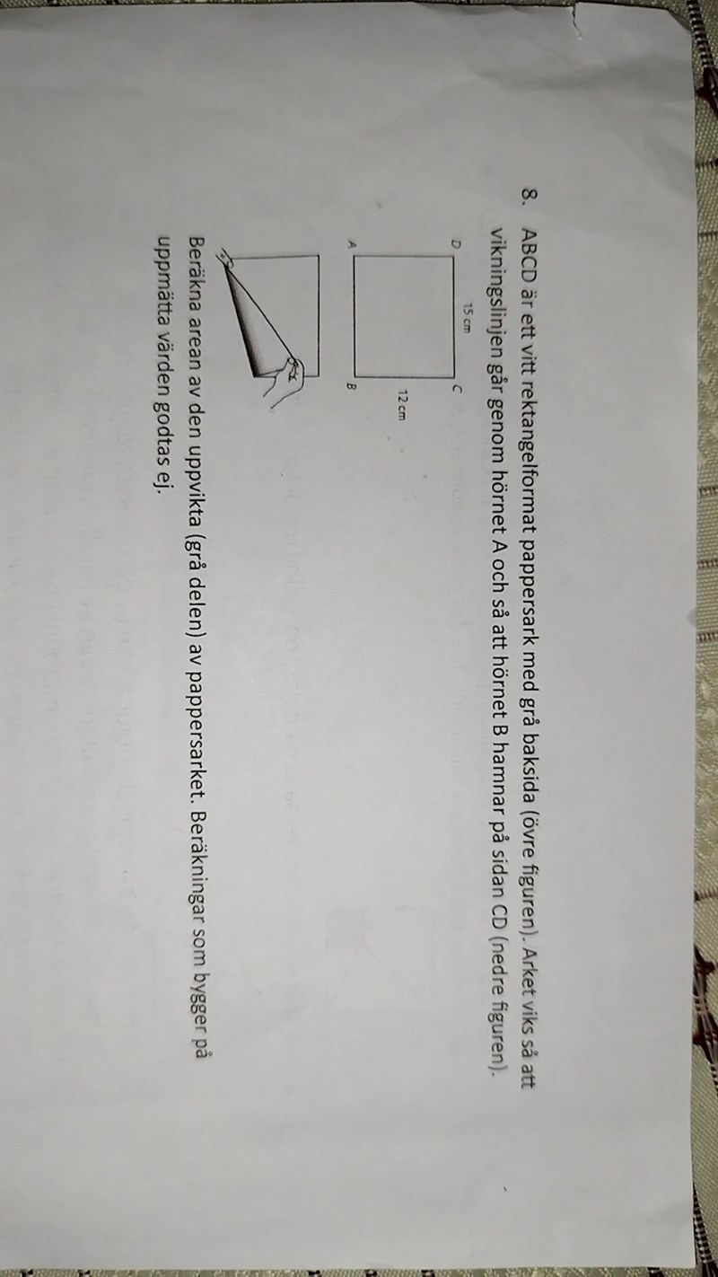 Vad beträffar uppgift 8: ta ett papper och vik, så fattar du säkert nånting av uppgiften.