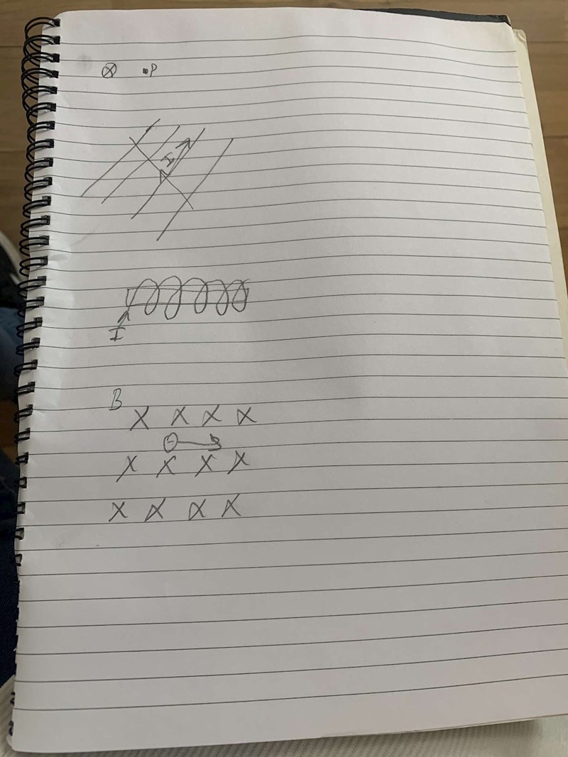 1- (magnetfältsriktning):punkt P rör sig åt höger