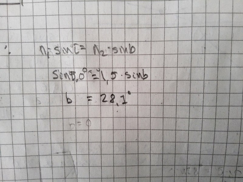 Jag försöker lösa en uppgift om brytningslagen för ljus, men lyckas endast lösa en del av uppgiften.