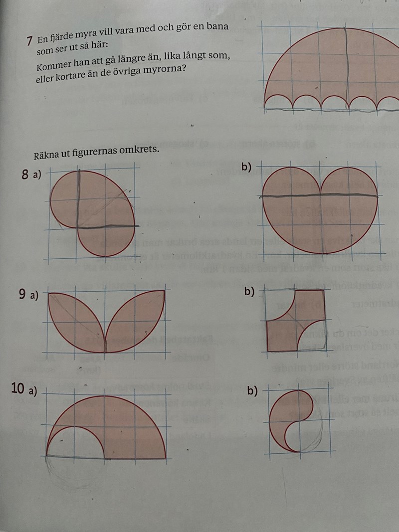 9b: 2 stycken 1/4 bågar till en cirkel med radien 1. Övriga sidor är bara att räkna.