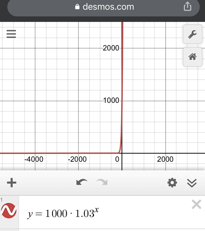 Jag använder mig av Desmos.com och får någon löjlig graf när jag matar in y=1000*1,03^x