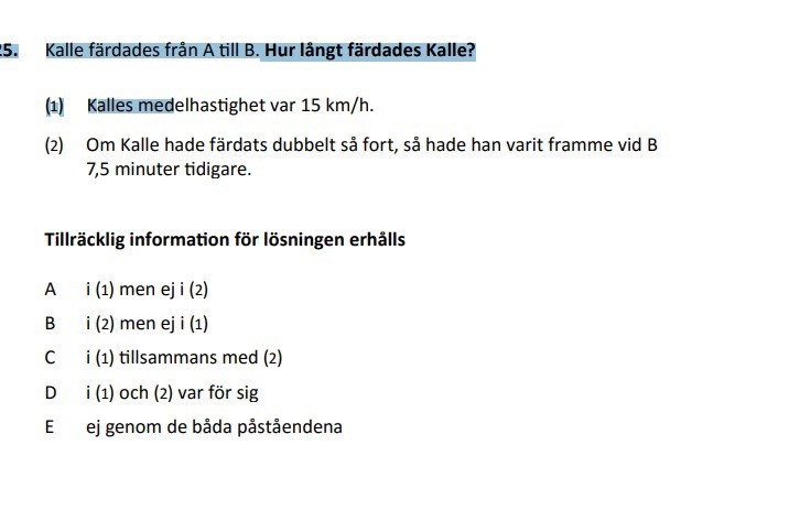 Ur (2) vet vi hur länge han åkte och det gånger hastigheten (1) ger ju sträckan.