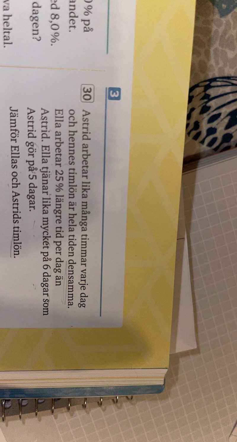 Du vet att Ella jobbar 25 % längre per dag men du vet inte vad hennes timlön är. Kalla Ellas timlön för x. Då kan du sätta upp ett uttryck som beskriver hur mycket Ella tjänar på 6 dagar.