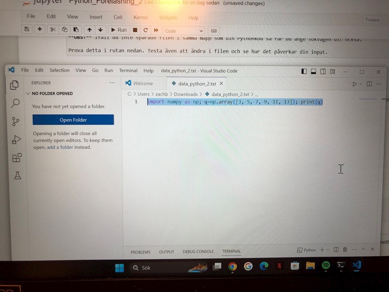 Jag har sparat en kod på vscode med namnet ”data_python_2.txt”.