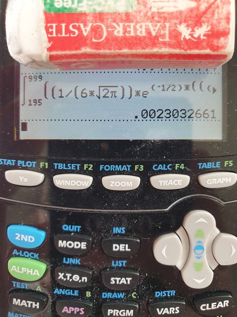 För att beräkna denna integral måste vi göra en approximation. Normalfördelningskurvan går snabbt mot noll, det är tex bara 0,13 % av observationerna som har ett värde över medelvärdet +3 standardavvikelser. Det innebär att värden utanför medelvärdet ±10 standardavvikelser kan försummas.