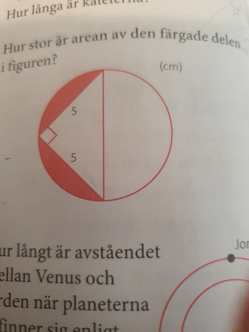 Halvcirkelns diameter är cm, vilket innebär att halvcirkelns area är cm2.