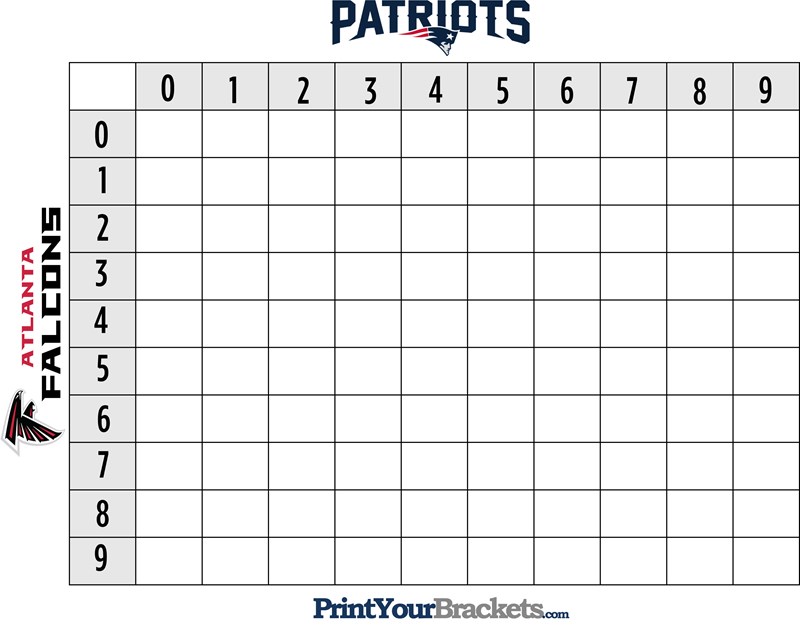 Låt svart tärning = ”Patriots” och röd tärning = ”Falcons”. Skriv in differnsen i varje ruta som motsvarar en kombination.