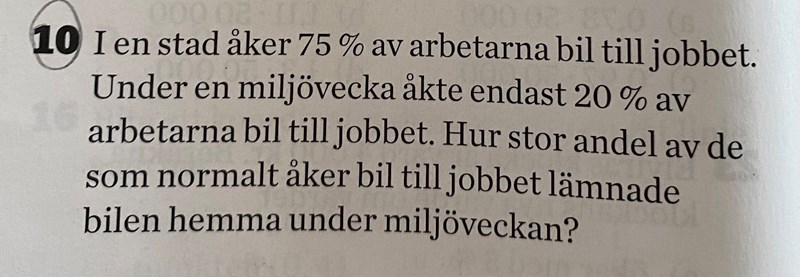 Om du sätter antalet arbetare i staden till x, så kan du skriva antalet som normalt tar bilen till jobbet som