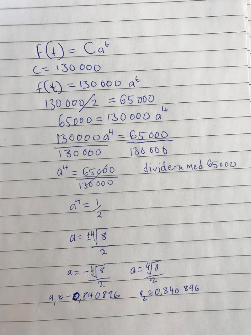 f(t)=C.a^t f(4)=130 000.2^2 Går det till sådär eller?